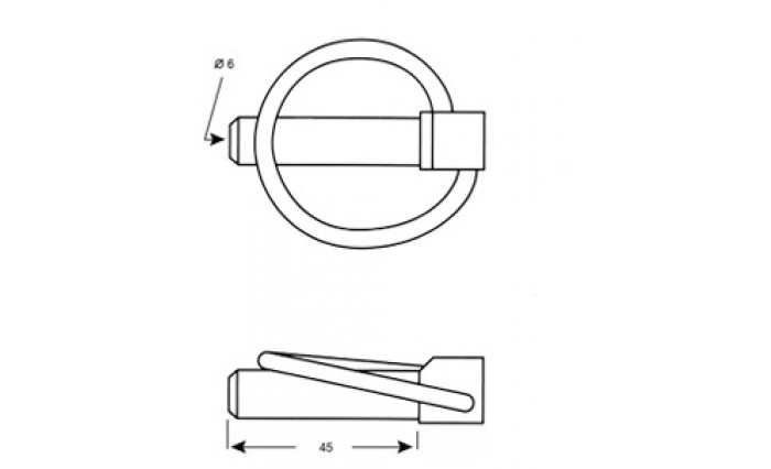 This Lynch Pin is zinc plated and has a pin thickness of 6mm (1/4"), and suits a maximum shaft thickness of 30mm.
